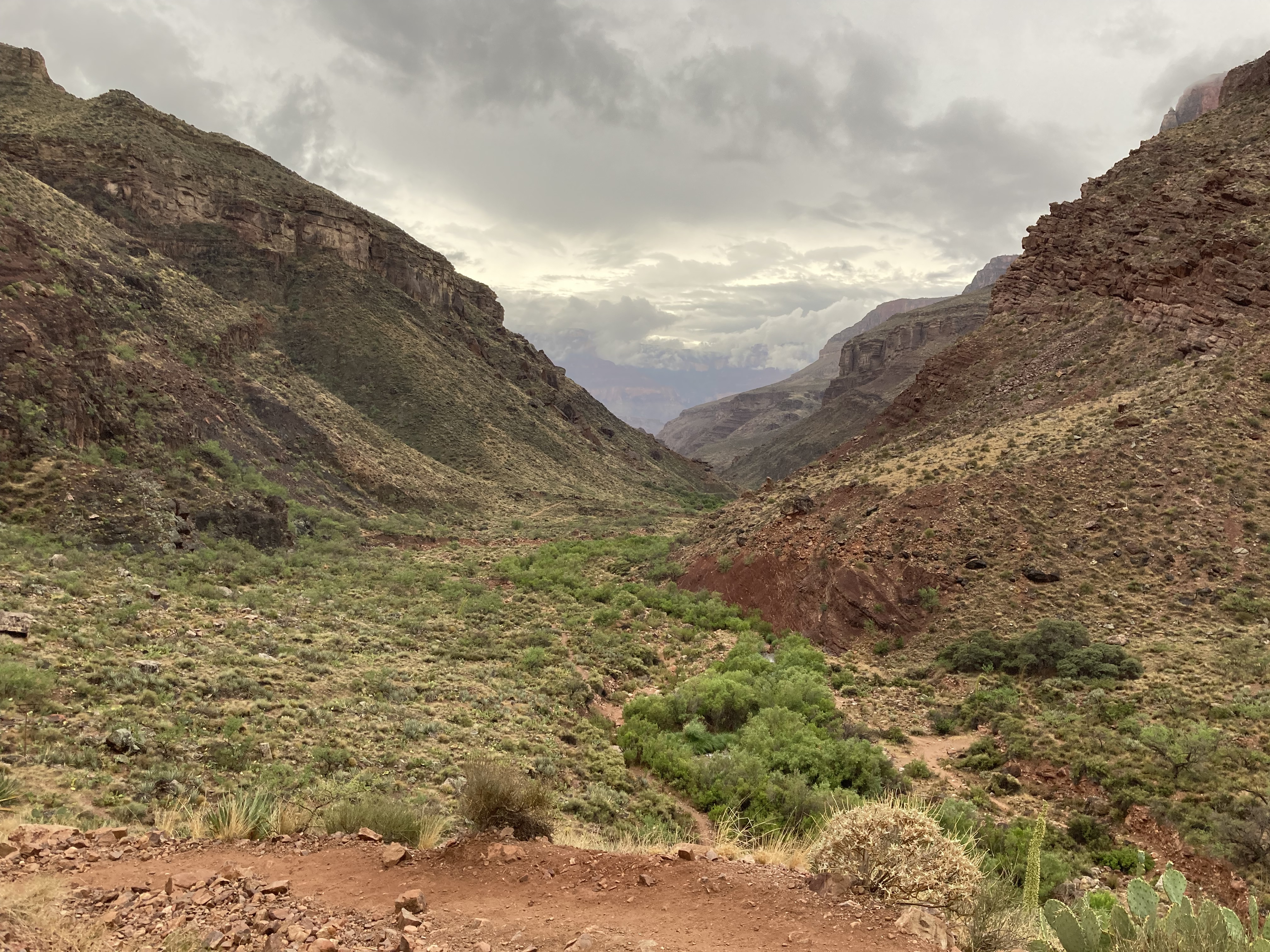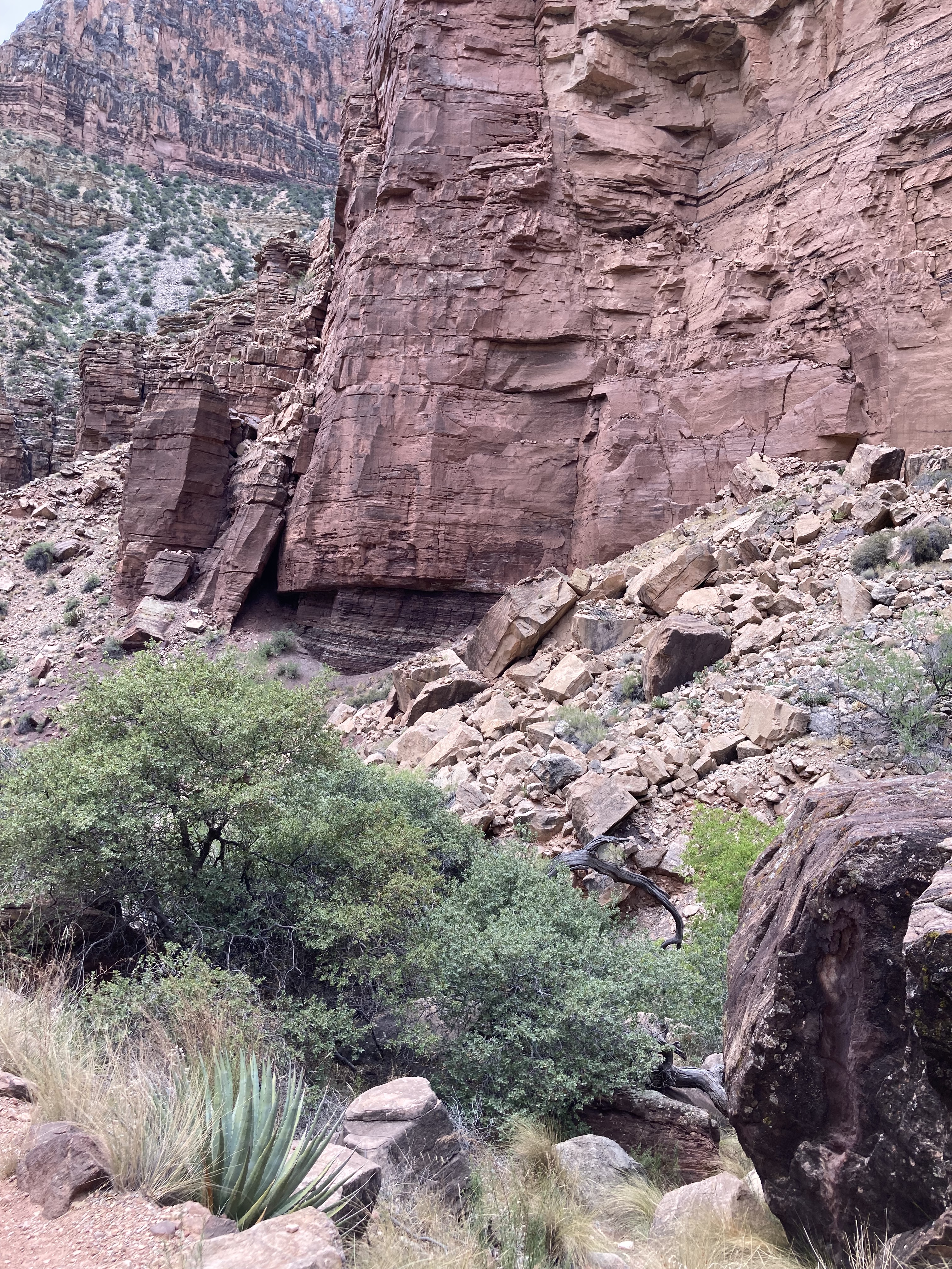 North Kaibab Trail descends the Layered Paleozoic Rocks (Kaibab through Tapeats) in the same order as the Bright Angel Trail, but below Manzanita Rest Area it passes through the Supergroup Rocks – Unkar Group before reaching the basement rocks in The Box.