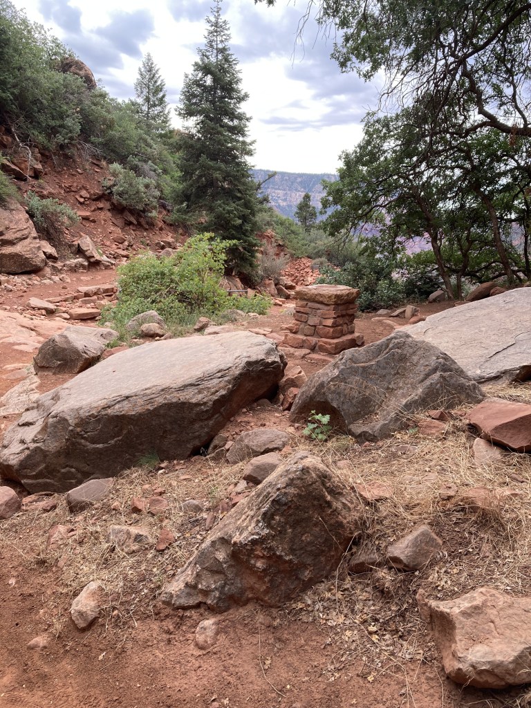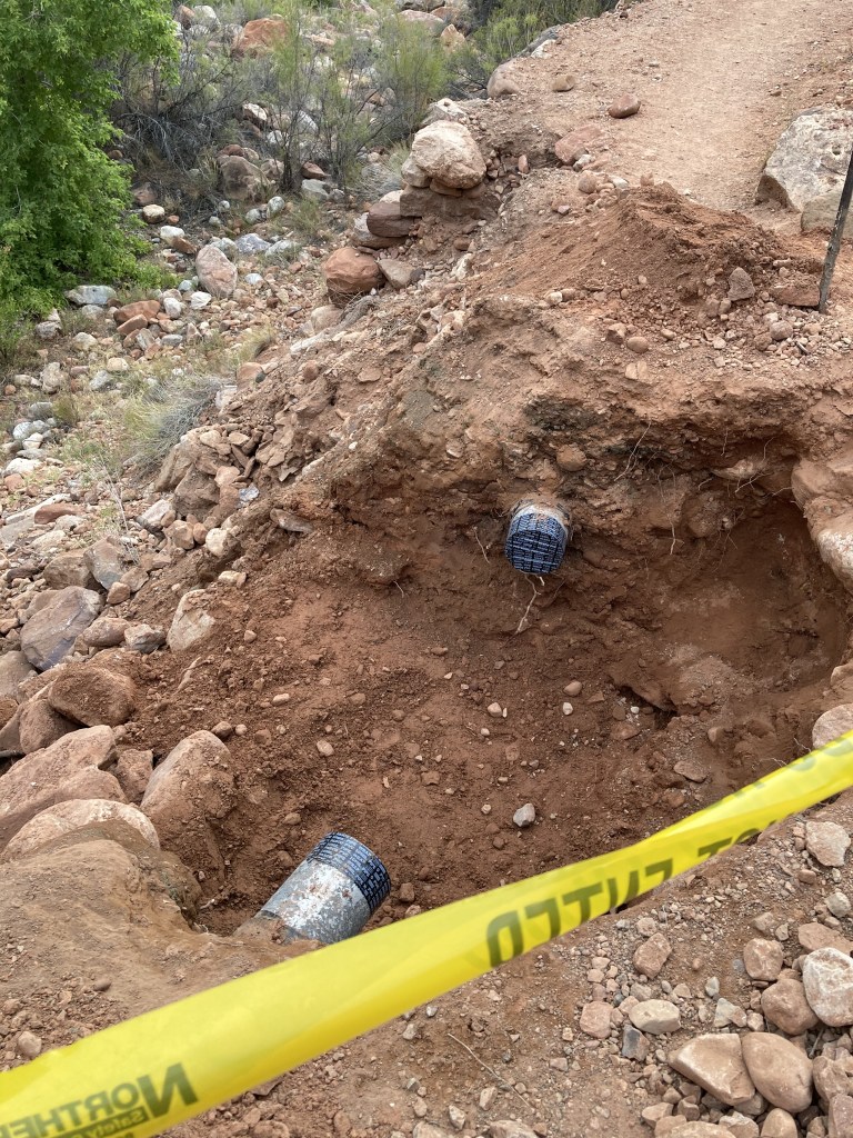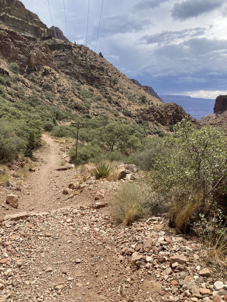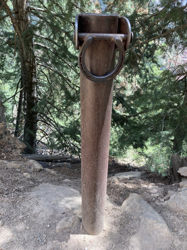 Water pipeline break – N Kaibab Tr below Ribbon FallsTrans-Canyon Telephone line – North Kaibab TrailN Kaibab TrBridge at Manzanita Rest Area – Manzanita Creek joins Bright Angel CreekThing-a-ma-jig on a switchback above the spire – N Kaibab Trblast holes in Supai TunnelWater spigot at Supai Tunnel- N Kaibab Tr- 7/14/2022 – water is OFF due to a pipeline breakMule Hitch – N Kaibab Tr- the lead mule blocks the path as the wrangler adjusts riders’ strapsBright Angel Campground June 14, 2018 12:33PMTrailside historic marker near Phantom Ranch: Trans-Canyon Telephone lineExposed water pipeline June 14, 2018 9:23 AMUpper Tunnel Bright Angel TrailThe group site pack pole at BA Campground looks like a repurposed telephone polepost-hike breakfast at a shaded table at my campsite at Havasupai GardensCampground kiosk at Havasupai GardensAmphitheater at Phantom RanchBright Angel Creek and Campground – In the mid 1930’s, workers from CCC Camp #818 lived here. They planted Cottonwood trees.Silver Bridge June 14, 2018 10:02 AM – The metal under my feet is vibrating and the River is LOUD. Mules arriving at Phantom Ranch June 15, 2018 6:48 AMCanteen at Phantom RanchMailed by Mule postcard drop off at the CanteenCanteen at Phantom Ranch